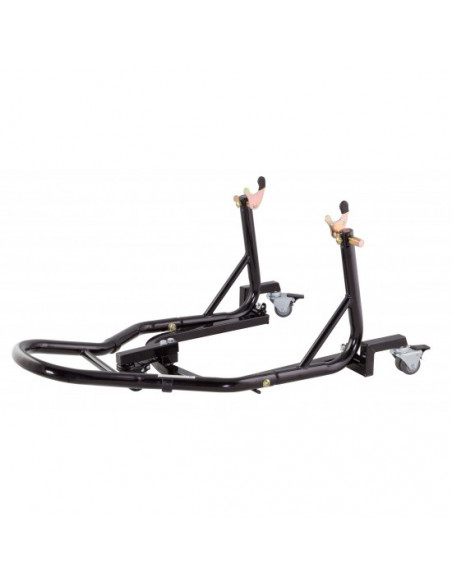 Bonjour, la béquille est identique à la description et les photos présentent sur la fiche article, après vérification du produit ici, nous vous confirmons qu'aucune modification n'a pas été effectué par le fabricant de ce modèle et correspond bien à la notice transmise. Seule différence est la base des supports qui sont désormais en tube carré, et les roulettes livrées en plus pour en faire une béquille classique. |