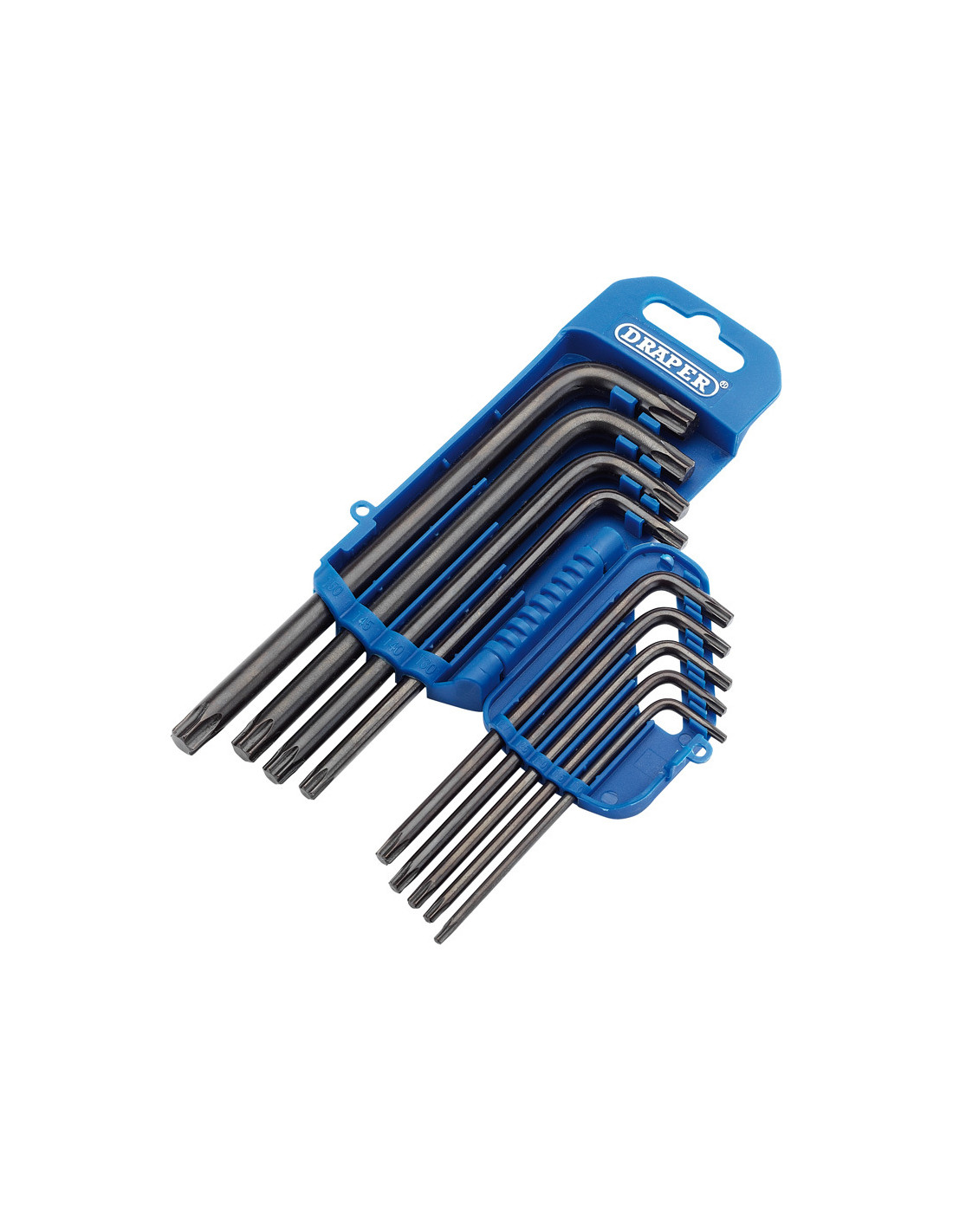 Jeu de 9 clés mâles Torx® longues rangées dans un étui en plastique.