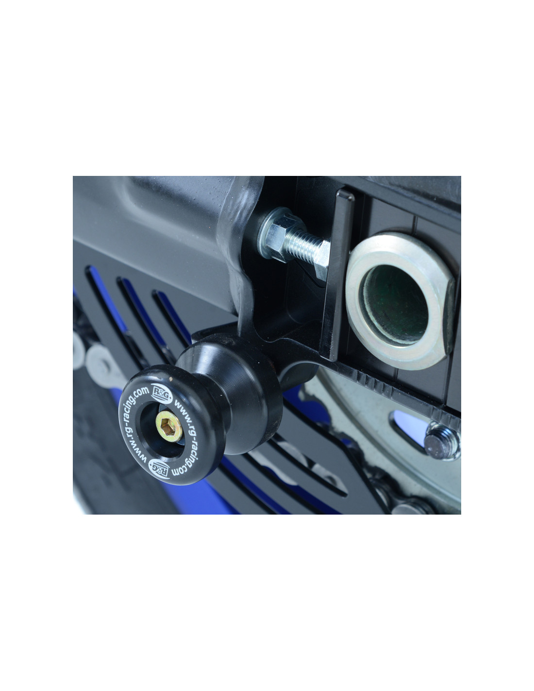 Les pions de bras-oscillant R&G Racing permettent de protéger la partie arrière basse de la moto en cas de chute.
