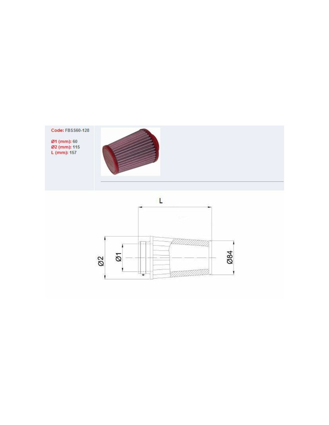Filtre à air BMC conique Ø60mm - FBSS60-128