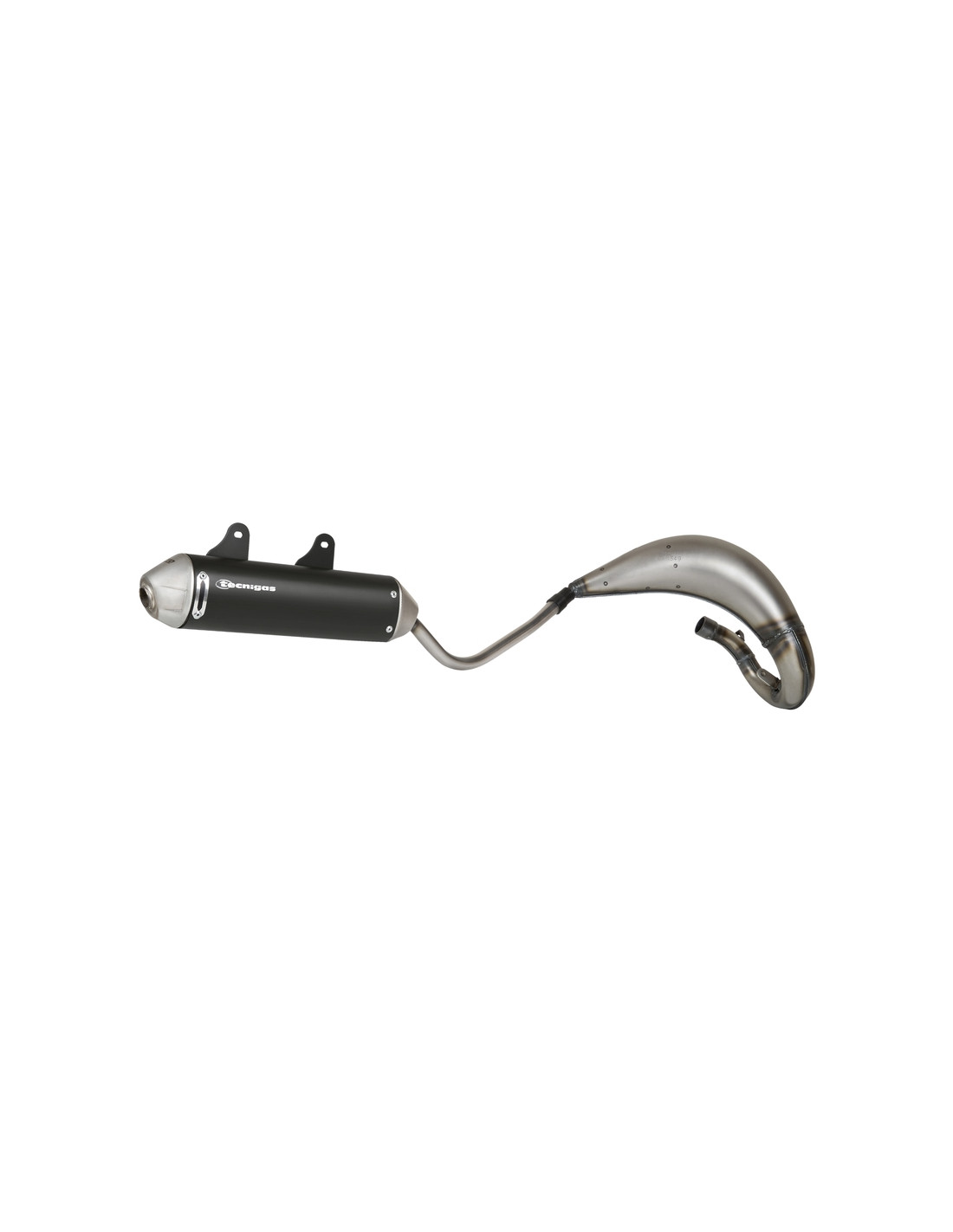 - Silencieux en aluminium anodisé noir dans une conception basée sur les modèles enduro du marché