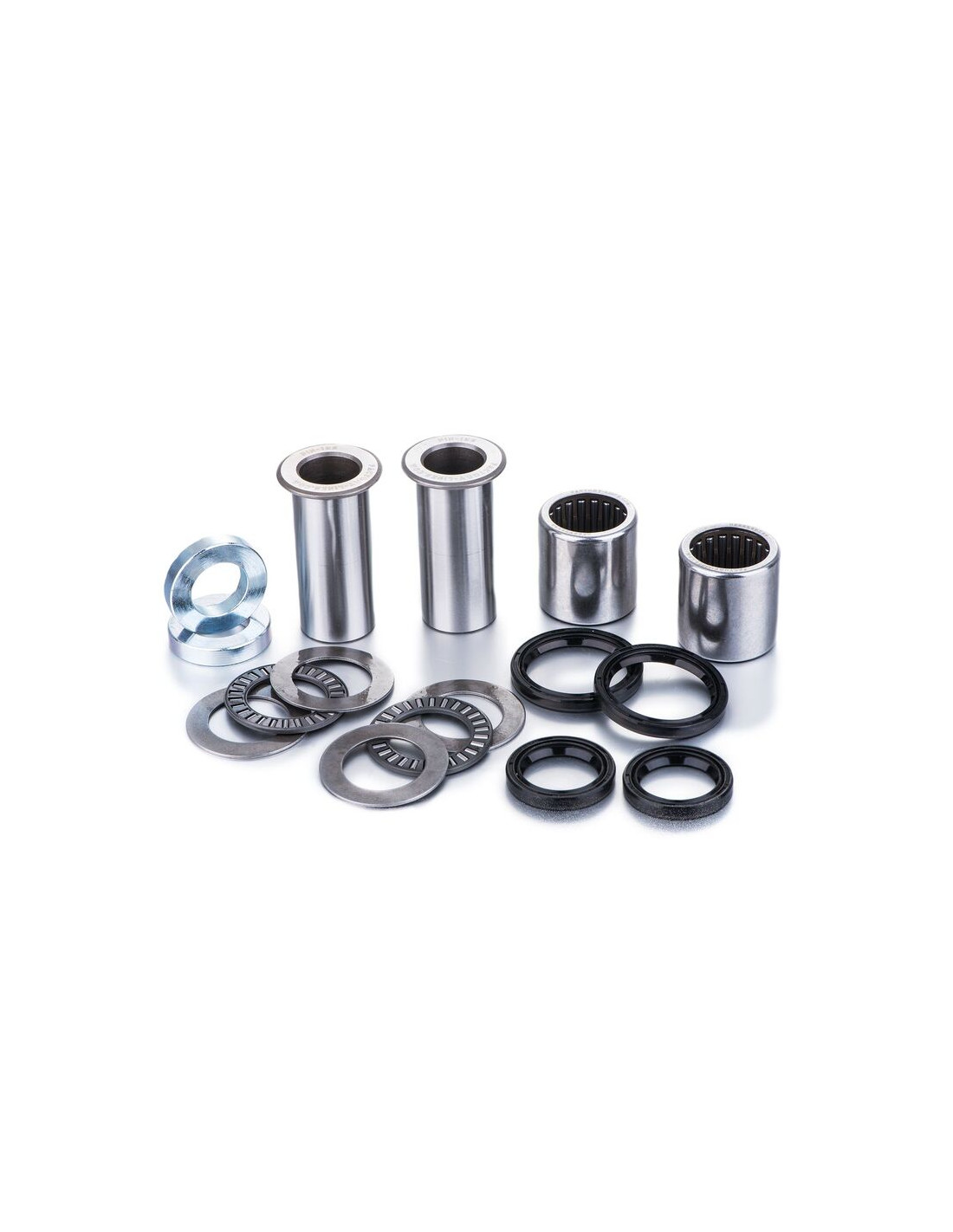 Nos kits contiennent tous les éléments nécessaires au reconditionnement de bras oscillant ; les roulements, bagues, entretoises et joints sont de qualité origine.