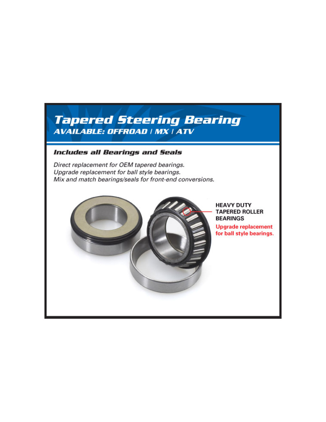 Les kits roulement ALL BALLS pour colonne de direction sont dotés de rouleaux coniques, ce qui permet à la pièce de supporter des charges plus élevées, tout en conservant une précision maximale de fonctionnement.