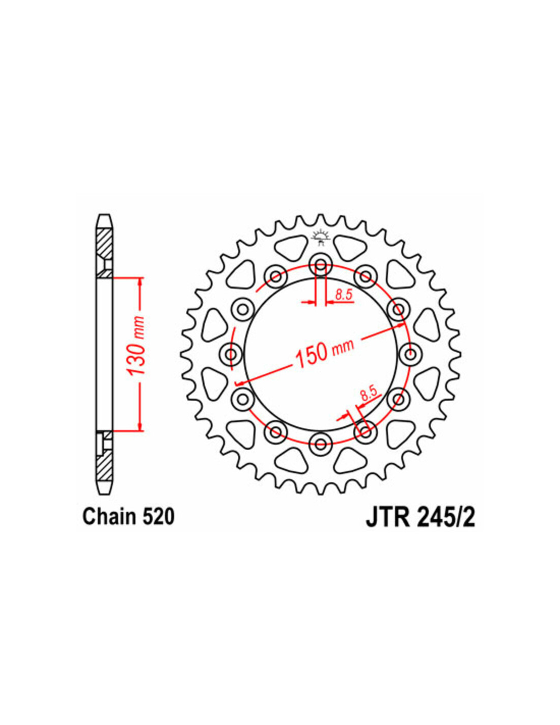 Couronne JT SPROCKETS acier standard 245/2 - 520