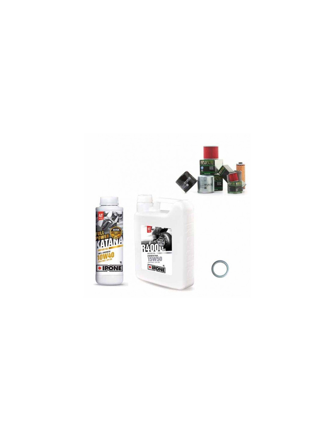 Filtre à huile Hiflofiltro HF153 + Huile Ipone Full Power Katana 100% synthèse 15w50 (4l) + rondelle de vidange diamètre 16mm
