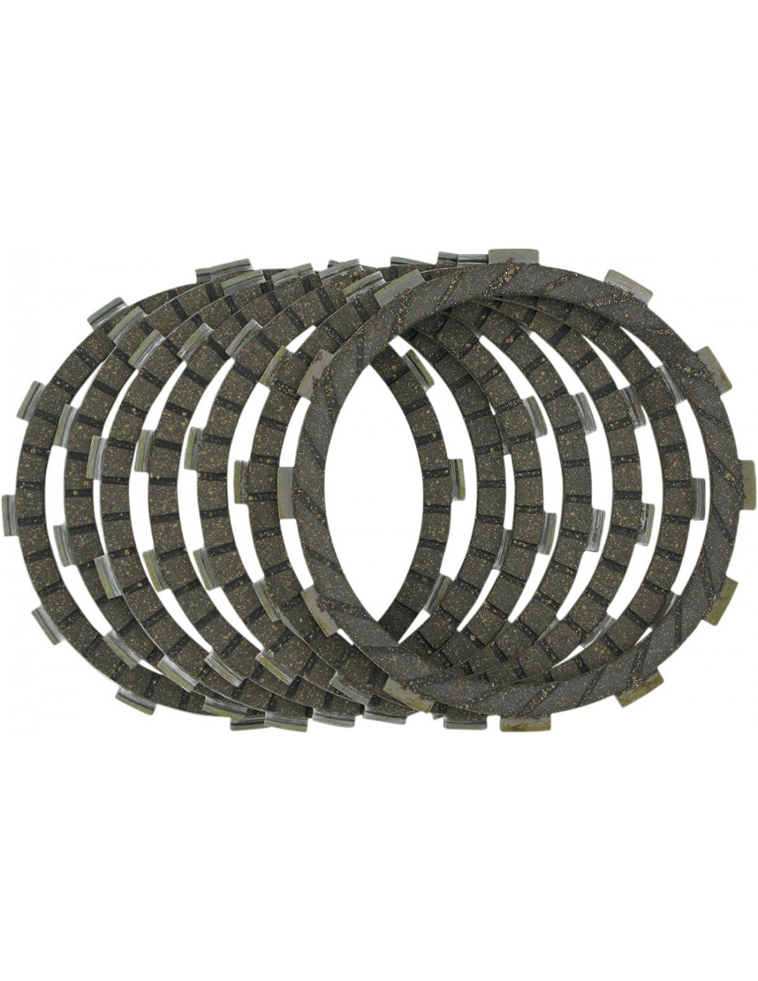 Matériel de l'embrayage à base de liège imprégné de particules d'aluminium pour augmenter la résistance à l'usure et aux températures élevées, Une construction comprimée évite l'expansion et le décrochage de l'embrayage, Idéal pour motos urbaines/de sport/de touring d'usage général, Le kit ne comprend que le jeu complet de disques garnis pour moteur, À utiliser avec l’huile pour transmission recommandée par le fabricant