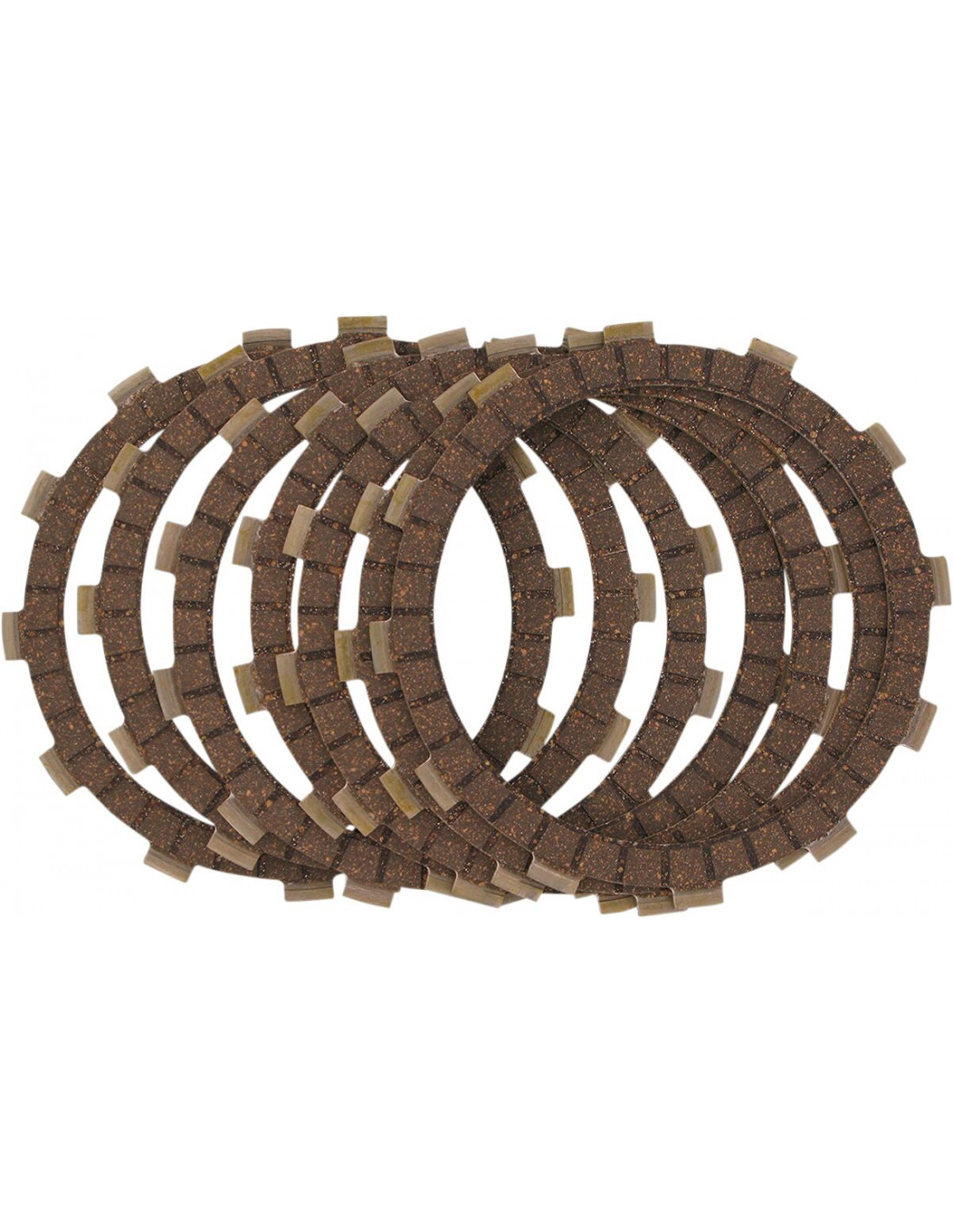 Matériel de l'embrayage à base de liège imprégné de particules d'aluminium pour augmenter la résistance à l'usure et aux températures élevées, Une construction comprimée évite l'expansion et le décrochage de l'embrayage, Idéal pour motos urbaines/de sport/de touring d'usage général, Le kit ne comprend que le jeu complet de disques garnis pour moteur, À utiliser avec l’huile pour transmission recommandée par le fabricant