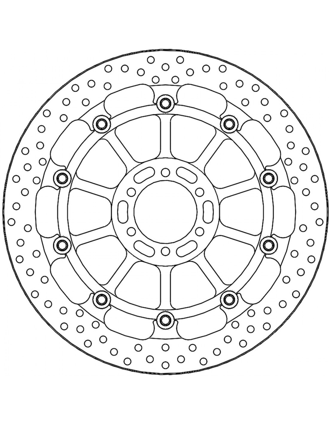 Disque flottant Racing série HaloUn nouveau standard dans le domaine des disques de frein circulaires aftermarketDurable, le disque externe en acier inoxydable de qualité premium est découpé au laser et poli avec haute précisionLe support est usiné CNC en billette d'aluminium de qualité aéronautique, anodisé en noir et gravé au laserDes trous d'évent sont dimensionnés et positionnés avec exactitude pour assurer une dissipation régulière de la chaleur, même dans des conditions de stress thermique, tout en préservant la propreté de la surface de contact de la plaquette de freinDes flotteurs en acier inoxydable légers viennent parfaire l'ensemble