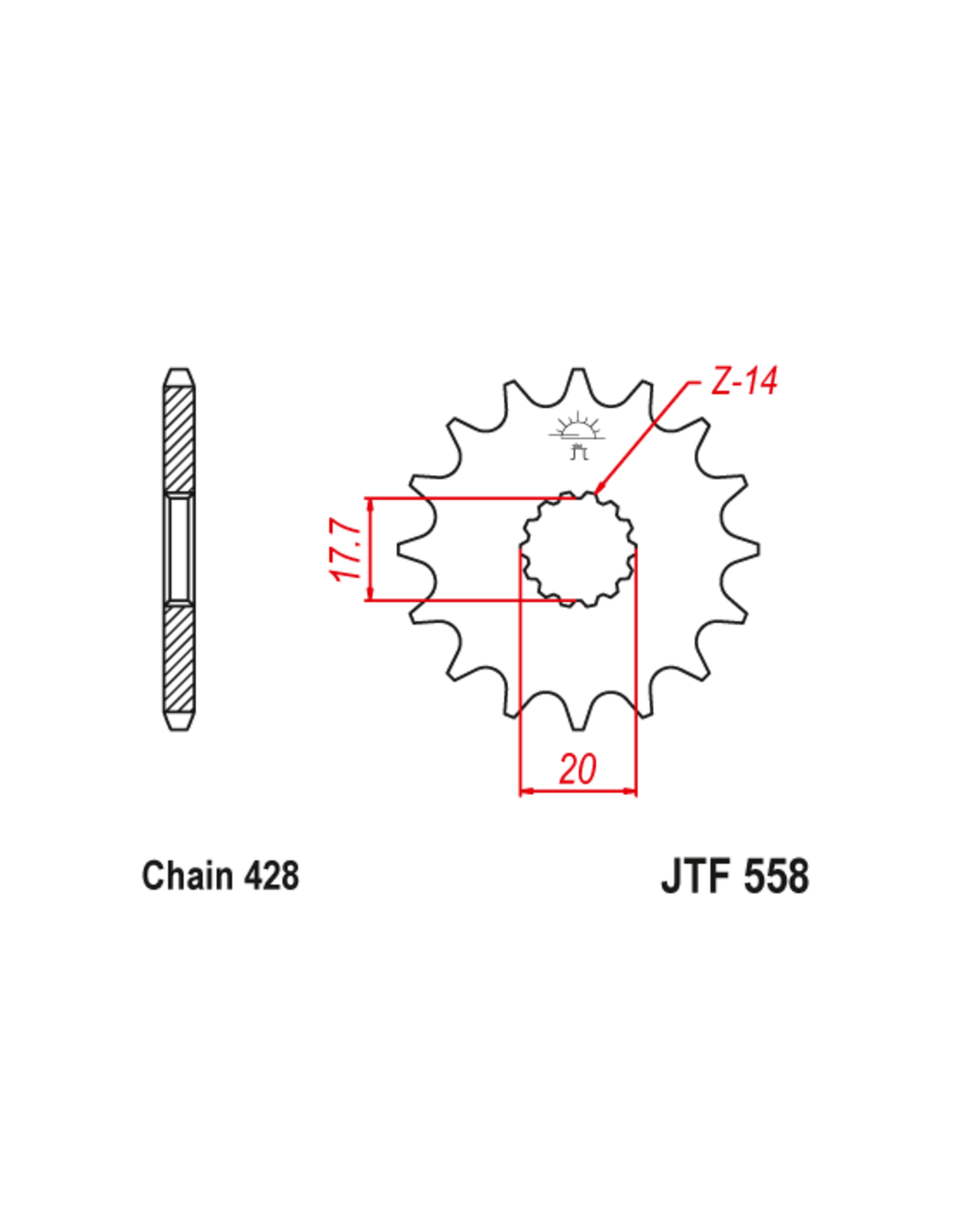 Pignon JT SPROCKETS acier anti-bruit 558 - 428
