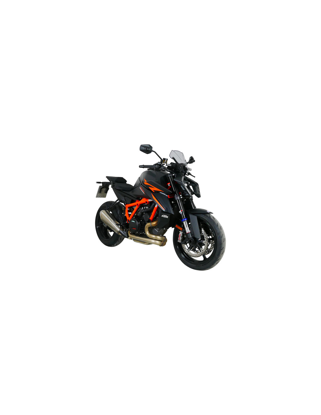 Cette bulle sport MRA (NSPM) souligne le design radical de la Superduke. Son contour est repris des feux de jour, de sorte qu'il s'intègre parfaitement à l'ensemble. Disponible en incolore, gris fumé et noir. Les accessoires nécessaires à la fixation sont inclus dans la livraison.