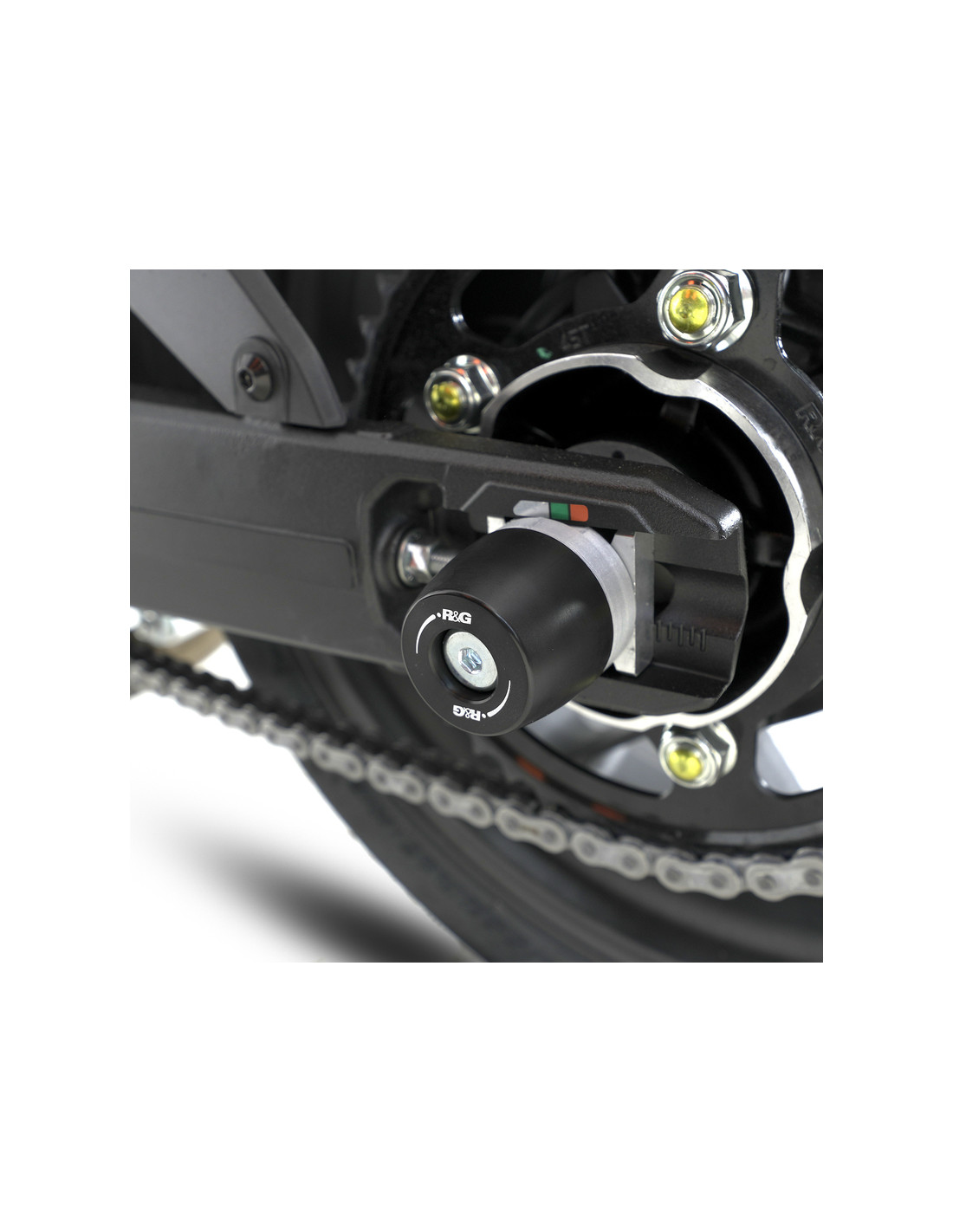 Swingarm protectors are fitted by means of a stainless steel bar passing through the rear spindle (except code SP0001). They can be fitted easily and are designed to help save your swingarm in the event of a crash.