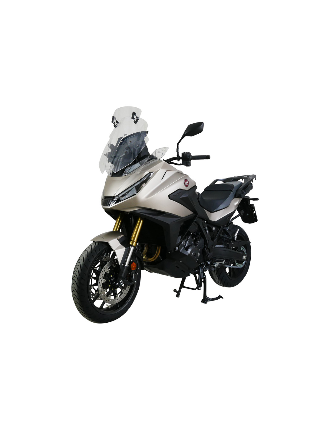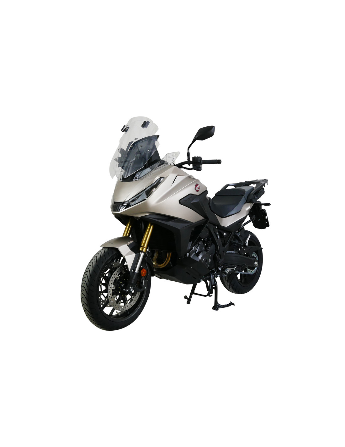 Écran Variotouring VTM Le NT1100 souhaite suivre les traces de la Pan European et de la Deauville, en étant clairement orienté vers la route. Honda accorde déjà une grande importance à une bonne protection contre le vent dès l'usine : avec les déflecteurs supplémentaires, les conducteurs sont protégés du vent sur les bras et la partie inférieure du corps. En remplaçant l'écran d'origine par l'écran Variotouring MRA avec spoiler réglable sur sept positions, les avantages sont rapidement visibles : Le spoiler permet de perturber plus ou moins l'écoulement de l'air entre l'écran et le VT-spoiler, ce qui réduit encore la pression du vent sans créer de turbulences. Des conditions optimales pour une conduite détendue, même lors de longs trajets. L'écran Variotouring est disponible en version claire et gris fumé, et tout le matériel de montage est inclus. Le réglage en hauteur et en angle sur 5 niveaux est bien sûr conservé.