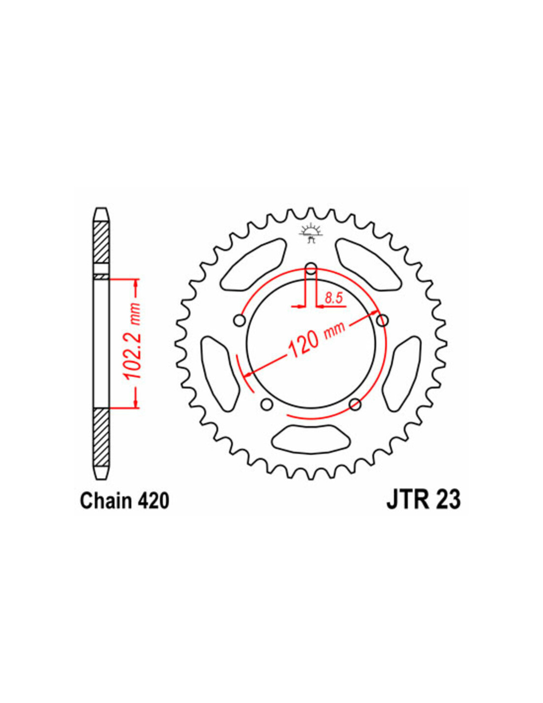 Détails techniques de la chaîne JT Sprockets 420 HDR :