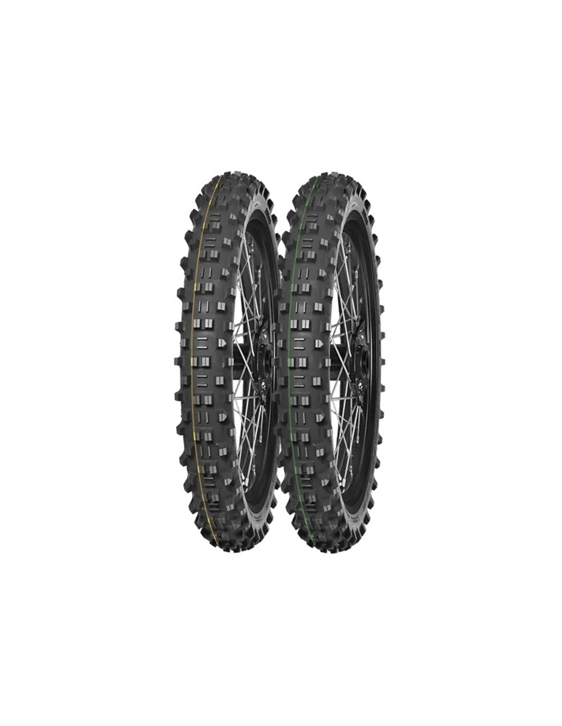 Super Light (Technical Enduro) identifié par la bande verte caractéristique : construction de carcasse légère et souple et composé gommeux, pour une meilleure absorption des obstacles durs et un niveau d'adhérence plus élevé.